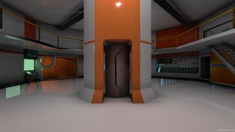 場景3:遊戲場景設計大廳 1F 電梯室,燈光採取明亮且對稱的雙主光源。