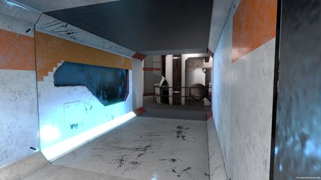 場景3:遊戲場景設計大廳 1F 電梯室,燈光採取明亮且對稱的雙主光源。